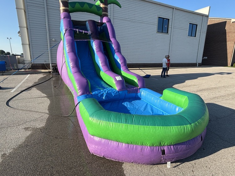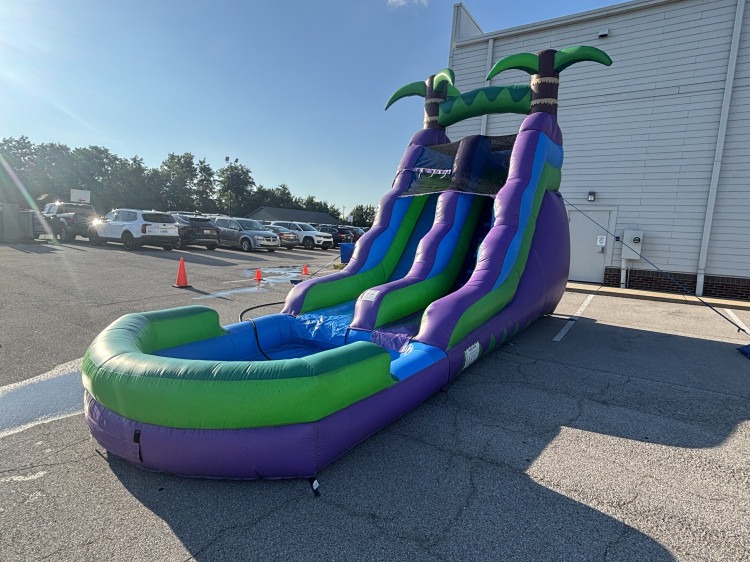 16ft Tropical Water Slide16ft Tropical Slide:16ft Tropical Water Slide 1Dropdown13110973_3110919110 Experience the ultimate summer fun with our 16ft Tropical Water Slide, available for rent! Perfect for backyard parties, family gatherings, or any outdoor event, this vibrant and eye-catching slide will be the highlight of your day. Featuring a stunning tropical theme with palm trees and bright colors, it creates an exciting atmosphere for kids and adults alike.